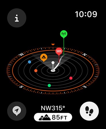 watchOS 10 introduces significant improvements to hiking. The Compass app, for example, offers a 3D view of where you’ve been, including an estimate of the last location with cellular reception so that you know where to head off if you get lost. Tap the FT (feet) indicator at the bottom of the screen to invoke Elevation View.