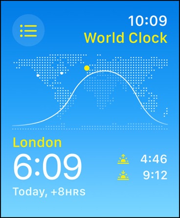 The World Clock app, for example, adopts a broader font style to take advantage of the entire width of the display and includes a map to demonstrate the day/night cycle for every city on your watchlist.